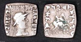 | Description / विवरण | Descrpn./Obv Helmeted bust of king to right; Greek legend, Basileos aniketou Philoxenou. Descrpn./Rev King mounted on horse prancing right; Kharoshthi legend Maharajasa apadihatasa Philasinasa |