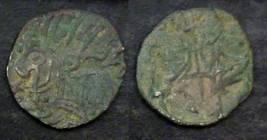 | Description / विवरण | Descrpn./Obv Recumbent bull facing left, wearing jhula (saddle cloth), with trisula (trident) symbol on rump. Above, legend in Sarada script Sri Samantadeva . Descrpn./Rev Rider with lance on caparisoned horse facing right. On left, Sarada letter bhi and on right, Sarada letter ta |