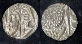 | Description / विवरण | Descrpn./Obv In the centre, a chhatra with Sa and Ta in Gurumukhi script on the left and right of its shaft; traces of the Persian legend seen on the obverse of the bigger Nanakshahi coins of Amritsar mint are also seen. Descrpn./Rev Big peepal leaf and traces of the Persian legend seen on the reverse of the bigger Nanakshahi coins of Amiritsar mint - Shri Amritsarjiv zarb [VS Year] Takht maimanat julus manus Akal Bakht. Especially traces of alif of Akal and te of Takht and maimanat are seen |