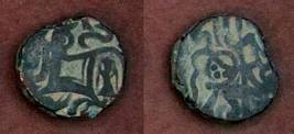 | Description / विवरण | Descrpn./Obv Recumbent bull facing left, wearing jhula (saddle cloth). Above, legend in Sarada script Sri Samantadeva (in cursive letters, mostly truncated and seen partially or off the flan). Descrpn./Rev Rider with lance on caparisoned horse facing right. |