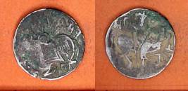 | Description / विवरण | Descrpn./Obv Recumbent bull facing left, wearing jhula (saddle cloth), with trisula (trident) symbol on rump. Above, legend in Sarada script Sri Samantadeva . Descrpn./Rev Rider with lance on caparisoned horse facing right. On left, Sarada letter bhi and on right, Sarada letter ta |