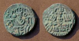| Description / विवरण | Descrpn./Obv Stylised seated Goddess facing; Sharada legend, Ja (on l.), ga (on r.). Descrpn./Rev Stylised standing king design; Sharada legend, deva (on r.) |