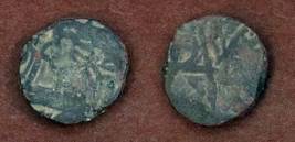 | Description / विवरण | Descrpn./Obv Recumbent bull facing left, wearing jhula (saddle cloth). Above, legend in Sarada script Sri Samantadeva (in cursive letters, mostly truncated and seen partially or off the flan). Descrpn./Rev Rider with lance on caparisoned horse facing right. |