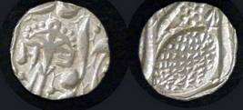 | Description / विवरण | Descrpn./Obv In the centre, a chhatra with Sa and Ta in Gurumukhi script on the left and right of its shaft; traces of the Persian legend seen on the obverse of the bigger Nanakshahi coins of Amritsar mint are also seen. Descrpn./Rev Big peepal leaf and traces of the Persian legend seen on the reverse of the bigger Nanakshahi coins of Amiritsar mint - Shri Amritsarjiv zarb [VS Year] Takht maimanat julus manus Akal Bakht. Especially traces of alif of Akal and te of Takht and maimanat are seen |