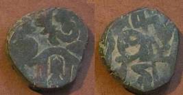 | Description / विवरण | Descrpn./Obv Recumbent bull facing left, wearing jhula (saddle cloth). Above, legend in Sarada script Sri Samantadeva (in cursive letters, mostly truncated and seen partially or off the flan). Descrpn./Rev Rider with lance on caparisoned horse facing right. |