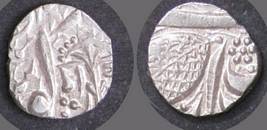 | Description / विवरण | Descrpn./Obv In the centre, a chhatra with Sa and Ta in Gurumukhi script on the left and right of its shaft; traces of the Persian legend seen on the obverse of the bigger Nanakshahi coins of Amritsar mint are also seen. Descrpn./Rev Big peepal leaf and traces of the Persian legend seen on the reverse of the bigger Nanakshahi coins of Amiritsar mint - Shri Amritsarjiv zarb [VS Year] Takht maimanat julus manus Akal Bakht. Especially traces of alif of Akal and te of Takht and maimanat are seen |