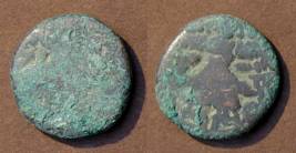 | Description / विवरण | Descrpn./Obv Stylised seated Goddess facing (Details and legend rubbed off/ worn out). Descrpn./Rev Stylised standing king design (Details and legend rubbed off/ worn out) |