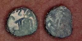 | Description / विवरण | Descrpn./Obv Recumbent bull facing left, wearing jhula (saddle cloth). Above, legend in Sarada script Sri Samantadeva (in cursive letters, mostly truncated and seen partially or off the flan). Descrpn./Rev Rider with lance on caparisoned horse facing right. |