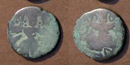 | Description / विवरण | Descrpn./Obv Stylised seated Goddess facing (Details and legend rubbed off/ worn out). Descrpn./Rev Stylised standing king design (Details and legend rubbed off/ worn out) |