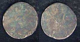 | Description / विवरण | Descrpn./Obv Recumbent bull facing left, wearing jhula (saddle cloth), with trisula (trident) symbol on rump. Above, legend in Sarada script Sri Samantadeva . Descrpn./Rev Rider with lance on caparisoned horse facing right. On left, Sarada letter bhi and on right, Sarada letter ta |