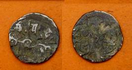 | Description / विवरण | Descrpn./Obv Recumbent bull facing left, wearing jhula (saddle cloth), with trisula (trident) symbol on rump. Above, legend in Sarada script Sri Samantadeva . Descrpn./Rev Rider with lance on caparisoned horse facing right. On left, Sarada letter bhi and on right, Sarada letter ta |