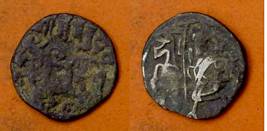 | Description / विवरण | Descrpn./Obv Recumbent bull facing left, wearing jhula (saddle cloth), with trisula (trident) symbol on rump. Above, legend in Sarada script Sri Samantadeva . Descrpn./Rev Rider with lance on caparisoned horse facing right. On left, Sarada letter bhi and on right, Sarada letter ta |