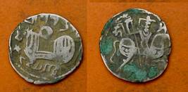 | Description / विवरण | Descrpn./Obv Recumbent bull facing left, wearing jhula (saddle cloth), with trisula (trident) symbol on rump. Above, legend in Sarada script Sri Samantadeva . Descrpn./Rev Rider with lance on caparisoned horse facing right. On left, Sarada letter bhi and on right, Sarada letter ta |