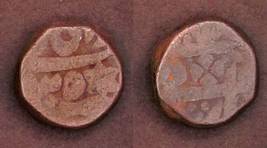 | Description / विवरण | Descrpn./Obv Worn out, traces of badshah ghazi. Descrpn./Rev traces of Sawai Jaipur and fish and flower symbols |