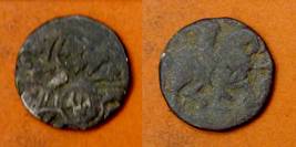 | Description / विवरण | Descrpn./Obv Recumbent bull facing left, wearing jhula (saddle cloth), with trisula (trident) symbol on rump. Above, legend in Sarada script Sri Samantadeva . Descrpn./Rev Rider with lance on caparisoned horse facing right. On left, Sarada letter bhi and on right, Sarada letter ta |