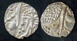 | Description / विवरण | Descrpn./Obv In the centre, a chhatra with Sa and Ta in Gurumukhi script on the left and right of its shaft; traces of the Persian legend seen on the obverse of the bigger Nanakshahi coins of Amritsar mint are also seen. Descrpn./Rev Big peepal leaf and traces of the Persian legend seen on the reverse of the bigger Nanakshahi coins of Amiritsar mint - Shri Amritsarjiv zarb [VS Year] Takht maimanat julus manus Akal Bakht. Especially traces of alif of Akal and te of Takht and maimanat are seen |