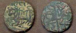 | Description / विवरण | Descrpn./Obv Recumbent bull facing left, wearing jhula (saddle cloth). Above, legend in Sarada script Sri Samantadeva (in cursive letters, mostly truncated and seen partially or off the flan). Descrpn./Rev Rider with lance on caparisoned horse facing right. |