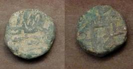 | Description / विवरण | Descrpn./Obv Recumbent bull facing left, wearing jhula (saddle cloth). Above, legend in Sarada script Sri Samantadeva (in cursive letters, mostly truncated and seen partially or off the flan). Descrpn./Rev Rider with lance on caparisoned horse facing right. |