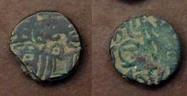 | Description / विवरण | Descrpn./Obv Recumbent bull facing left, wearing jhula (saddle cloth). Above, legend in Sarada script Sri Samantadeva (in cursive letters, mostly truncated and seen partially or off the flan). Descrpn./Rev Rider with lance on caparisoned horse facing right. |