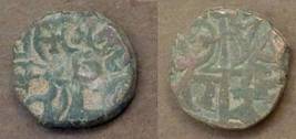 | Description / विवरण | Descrpn./Obv Recumbent bull facing left, wearing jhula (saddle cloth). Above, legend in Sarada script Sri Samantadeva (in cursive letters, mostly truncated and seen partially or off the flan). Descrpn./Rev Rider with lance on caparisoned horse facing right. |