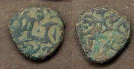 | Description / विवरण | Descrpn./Obv Recumbent bull facing left, wearing jhula (saddle cloth). Above, legend in Sarada script Sri Samantadeva (in cursive letters, mostly truncated and seen partially or off the flan). Descrpn./Rev Rider with lance on caparisoned horse facing right. |