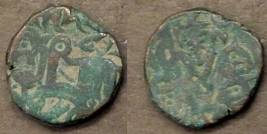 | Description / विवरण | Descrpn./Obv Recumbent bull facing left, wearing jhula (saddle cloth). Above, legend in Sarada script Sri Samantadeva (in cursive letters, mostly truncated and seen partially or off the flan). Descrpn./Rev Rider with lance on caparisoned horse facing right. |