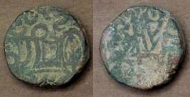 | Description / विवरण | Descrpn./Obv Recumbent bull facing left, wearing jhula (saddle cloth). Above, legend in Sarada script Sri Samantadeva (in cursive letters, mostly truncated and seen partially or off the flan). Descrpn./Rev Rider with lance on caparisoned horse facing right. |