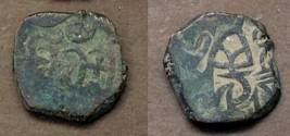 | Description / विवरण | Descrpn./Obv Recumbent bull facing left, wearing jhula (saddle cloth). Above, legend in Sarada script Sri Samantadeva (in cursive letters, mostly truncated and seen partially or off the flan). Descrpn./Rev Rider with lance on caparisoned horse facing right. |