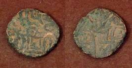 | Description / विवरण | Descrpn./Obv Recumbent bull facing left, wearing jhula (saddle cloth). Above, legend in Sarada script Sri Samantadeva (in cursive letters, mostly truncated and seen partially or off the flan). Descrpn./Rev Rider with lance on caparisoned horse facing right. |