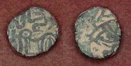| Description / विवरण | Descrpn./Obv Recumbent bull facing left, wearing jhula (saddle cloth). Above, legend in Sarada script Sri Samantadeva (in cursive letters, mostly truncated and seen partially or off the flan). Descrpn./Rev Rider with lance on caparisoned horse facing right. |