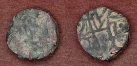 | Description / विवरण | Descrpn./Obv Recumbent bull facing left, wearing jhula (saddle cloth). Above, legend in Sarada script Sri Samantadeva (in cursive letters, mostly truncated and seen partially or off the flan). Descrpn./Rev Rider with lance on caparisoned horse facing right. |