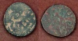 | Description / विवरण | Descrpn./Obv Recumbent bull facing left, wearing jhula (saddle cloth). Above, legend in Sarada script Sri Samantadeva (in cursive letters, mostly truncated and seen partially or off the flan). Descrpn./Rev Rider with lance on caparisoned horse facing right. |