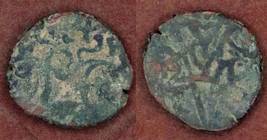 | Description / विवरण | Descrpn./Obv Recumbent bull facing left, wearing jhula (saddle cloth). Above, legend in Sarada script Sri Samantadeva (in cursive letters, mostly truncated and seen partially or off the flan). Descrpn./Rev Rider with lance on caparisoned horse facing right. |