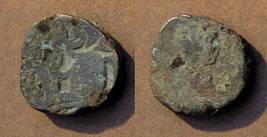| Description / विवरण | Descrpn./Obv Recumbent bull facing left, wearing jhula (saddle cloth). Above, legend in Sarada script Sri Samantadeva (in cursive letters, mostly truncated and seen partially or off the flan). Descrpn./Rev Rider with lance on caparisoned horse facing right. |