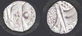 | Description / विवरण | Descrpn./Obv In the centre, a chhatra with Sa and Ta in Gurumukhi script on the left and right of its shaft; traces of the Persian legend seen on the obverse of the bigger Nanakshahi coins of Amritsar mint are also seen. Descrpn./Rev Big peepal leaf and traces of the Persian legend seen on the reverse of the bigger Nanakshahi coins of Amiritsar mint - Shri Amritsarjiv zarb [VS Year] Takht maimanat julus manus Akal Bakht. Especially traces of alif of Akal and te of Takht and maimanat are seen |