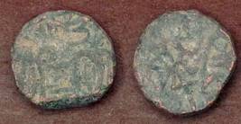 | Description / विवरण | Descrpn./Obv Recumbent bull facing left, wearing jhula (saddle cloth). Above, legend in Sarada script Sri Samantadeva (in cursive letters, mostly truncated and seen partially or off the flan). Descrpn./Rev Rider with lance on caparisoned horse facing right. |