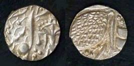 | Description / विवरण | Descrpn./Obv In the centre, a chhatra with Sa and Ta in Gurumukhi script on the left and right of its shaft; traces of the Persian legend seen on the obverse of the bigger Nanakshahi coins of Amritsar mint are also seen. Descrpn./Rev Big peepal leaf and traces of the Persian legend seen on the reverse of the bigger Nanakshahi coins of Amiritsar mint - Shri Amritsarjiv zarb [VS Year] Takht maimanat julus manus Akal Bakht. Especially traces of alif of Akal and te of Takht and maimanat are seen |