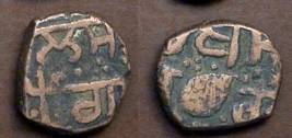 | Description / विवरण | Descrpn./Obv Parts of Gurumukhi inscription Akal /Sahai /Gur /Nanakji and a Trident . Descrpn./Rev Parts of Gurumukhi inscription Jaraba Shri /Ambratsa /rji with leaf in the centre |