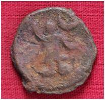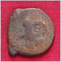 | Description / विवरण | The shape of the coin is circular. Obverse- Kushana type king standing with his right hand upwards and left arm extended. Reverse-- probably the figure of MAO or Moon God- with right arm curved up wards and the crescent above the left shoulder. |