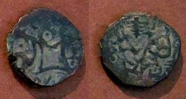 | Description / विवरण | Descrpn./Obv Recumbent bull facing left, wearing jhula (saddle cloth). Above, legend in Sarada script Sri Samantadeva (in cursive letters, mostly truncated and seen partially or off the flan). Descrpn./Rev Rider with lance on caparisoned horse facing right. |
