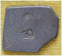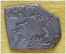 | Description / विवरण | The coin is an imperial type of Punch- marked Coin. The shape of the coin is irregular. Obverse Sun, bull, Six armed wheel, an animal stands above the hill. Reverse Three arched hill with a crescent at the top, crescent. |