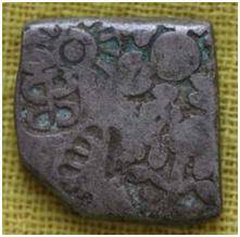 | Description / विवरण | The coin is an imperial type of Punch- marked Coin. The shape of the coin is pentagonal. Obverse Sun, tree, Six armed wheel, caduceus, animal. Reverse Caduceus. |