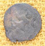 | Description / विवरण | The shape of the coin is circular. Obverse Kushana type king, standing with his right hand uowards and his left arm e xtended. Reverse Probably the figure of MAO or Moon-God with his right arm curved upwards and the crescent above the left shoulder. |