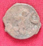 | Description / विवरण | The shape of the coin is circular. Obverse Kushana type king, standing with his right hand downwards and his left arm e xtended. Reverse Probably the figure of MAO or Moon-God with his right arm e xtended and the crescent above the left shoulder. |