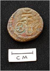 | Condition Description / स्थिति का विवरण | Green patination seen on chakra (Obv. side). |