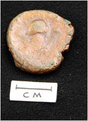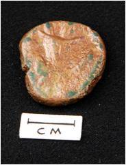 Obv. - a standing human figure is partially visible. Upper part is rubbed off. Rev. - Rubbed off figures symbols.