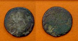 | Description / विवरण | Descrpn./Obv Recumbent bull facing left, wearing jhula (saddle cloth), with trisula (trident) symbol on rump. Above, legend in Sarada script Sri Samantadeva . Descrpn./Rev Rider with lance on caparisoned horse facing right. On left, Sarada letter bhi and on right, Sarada letter ta |