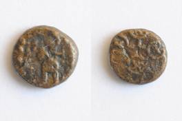| Description / विवरण | On the obverse urdhvakeshi Shiva standing with kamandal in right hand and staff in left hand, on right side tree in railing is depicted. On the reverse one orbed Ujjayani symbol and swastika in each orb is depicted. |