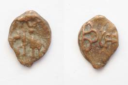| Description / विवरण | On the obverse Elephant facing left above it taurine is depicted. On the reverse three arched hill with swastik is depicted. |