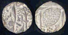 | Description / विवरण | Descrpn./Obv In the centre, a chhatra with Sa and Ta in Gurumukhi script on the left and right of its shaft; traces of the Persian legend seen on the obverse of the bigger Nanakshahi coins of Amritsar mint are also seen. Descrpn./Rev Big peepal leaf and traces of the Persian legend seen on the reverse of the bigger Nanakshahi coins of Amiritsar mint - Shri Amritsarjiv zarb [VS Year] Takht maimanat julus manus Akal Bakht. Especially traces of alif of Akal and te of Takht and maimanat are seen |